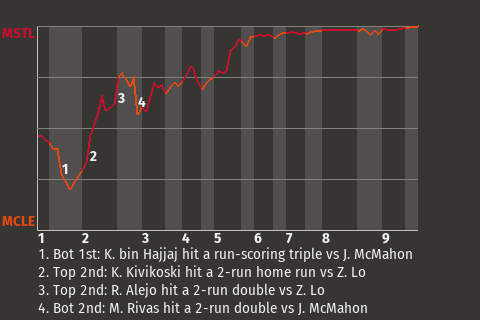 2 (2, 1st Inning off J. Toro, 0 on, 0 outs; 8th Inning off M. Cantú, 1 on, 1 out)
