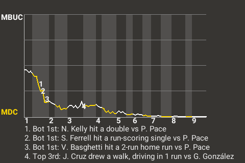 2 (6, 1st Inning off K. Takeda, 1 on, 2 outs; 7th Inning off R. Farrell, 2 on, 1 out)