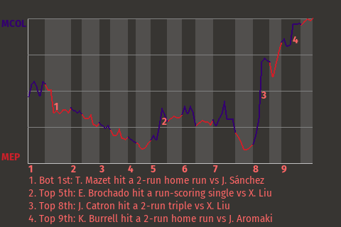 The MSL Echo Park Lakers beat the MSL Vancouver Grey Wolves by a score of 9-4. MSL Echo Park left fielder Grigorii Chasovschikov deserved the lion's share of the credit. Chasovschikov was 3-4 with a home run, 2 singles, and a walk, while scoring 2 runs and driving in 3 for the Lakers. Frazer Bice was the winner. He's now 1-0. The loser was Pat Edmonds. The win puts MSL Echo Park at 3-0.