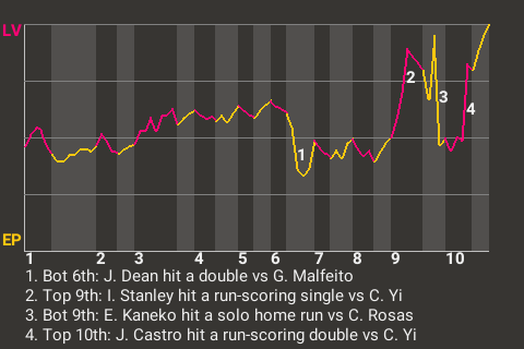 Las Vegas used a timely hit from José Castro to get the win. The center fielder stroked a run-scoring double in the top of the tenth inning to put the Flamingos ahead, 3-2. It was his only hit in 1 at-bat, but it was a difference-maker.