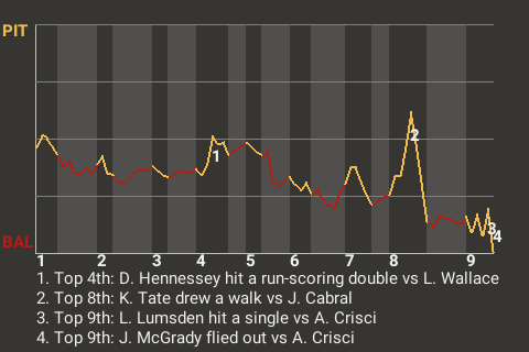 Baltimore goes to 24-36, Pittsburgh to 33-27.