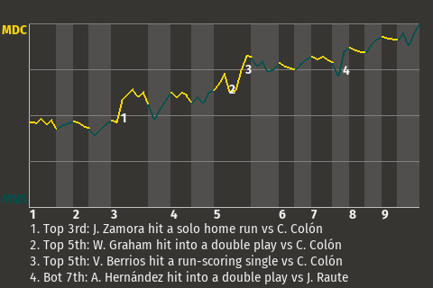 2 (2, 4th Inning off A. Njoka, 3 on, 2 outs; 9th Inning off J. Sánchez, 0 on, 1 out)