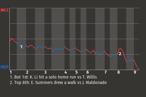 2 (5, 3rd Inning off A. Valenzuela, 2 on, 2 outs; 5th Inning off J. Santos, 1 on, 2 outs)