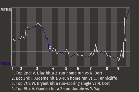 2 (9, 2nd Inning off A. Ortíz, 0 on, 0 outs; 3rd Inning off A. Ortíz, 0 on, 2 outs)