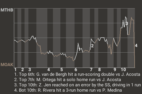 MSL St. Louis needed the clutch hitting of Xiao-peng Zhu to seal the deal. The right fielder swatted a 3-run home run in the top of the seventh inning to put the Coeur on top, 6-4. For the game, Zhu had 1 home run and 1 single in 4 at-bats.