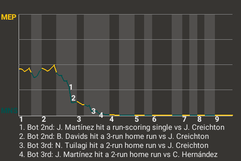 2 (8, 4th Inning off J. Medina, 0 on, 0 outs; 6th Inning off J. Medina, 0 on, 0 outs)