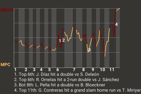 Gerardo Contreras delivered a big hit for MSL Charleston. The second baseman drilled a grand slam home run in the top of the 11th inning to put the Battery ahead, 6-2. It was his only hit, but it was a beauty.