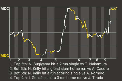 2 (9, 4th Inning off T. Nakamura, 1 on, 2 outs; 5th Inning off T. Nakamura, 3 on, 2 outs)