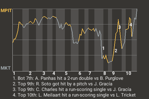 2 (8, 1st Inning off Q. Pai, 1 on, 1 out; 9th Inning off Á. Quintana, 1 on, 1 out)