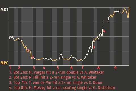 2 (9, 1st Inning off C. Guzmán, 0 on, 1 out; 9th Inning off J. Huang, 2 on, 1 out)