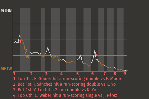 2 (4, 8th Inning off C. Guzmán, 3 on, 1 out; 9th Inning off C. Guzmán, 0 on, 0 outs)
