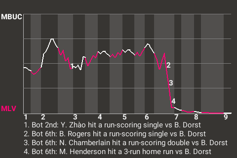 With MSL Echo Park leading 1-0 in the bottom of the fifth, Daye batted against MSL Baltimore pitcher Alonso Rodríguez. Daye hit a fastball to right for a bases-clearing double. His 5th double of the season put the Lakers on top, 4-0.