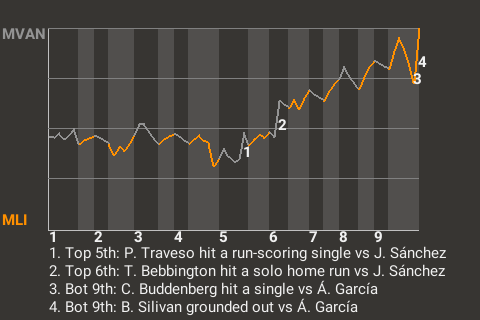 (3, 6th Inning off R. Morán, 1 on, 0 outs)