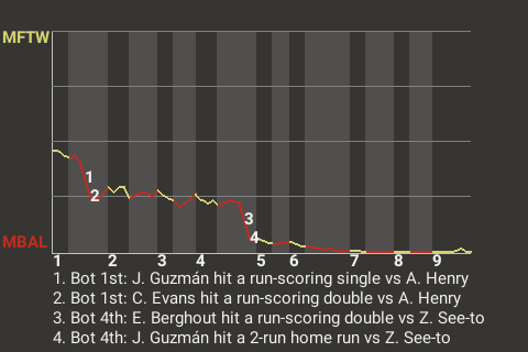 2 (5, 1st Inning off A. Henry, 0 on, 1 out; 4th Inning off Z. See-to, 1 on, 2 outs)