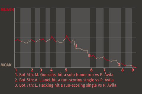 2 (8, 7th Inning off F. García, 0 on, 2 outs; 9th Inning off F. García, 1 on, 1 out)
