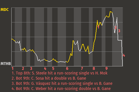 Alfredo Gómez dealt the Pandas a blow in the top of the sixth. Batting with runners on 2nd and 3rd and MSL Mexico City leading 1-0, Gómez hit a first pitch sinker for a run-scoring single.