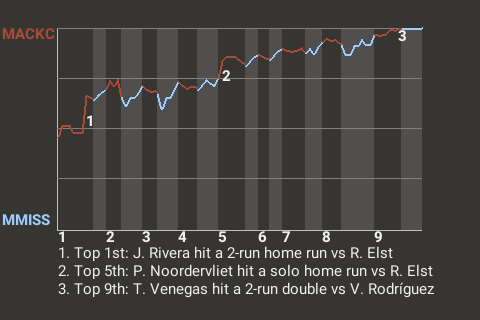 2 (9, 1st Inning off T. Lae, 0 on, 1 out; 8th Inning off M. Caro, 0 on, 0 outs)