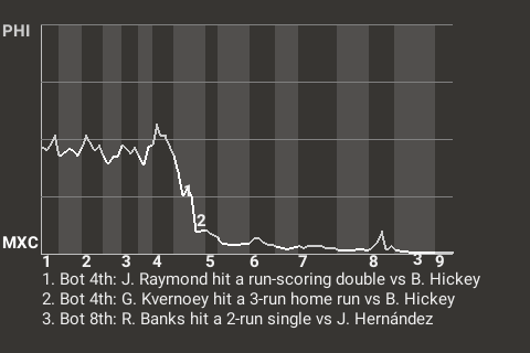 e - S. Poston pinch hit for J. Raymond in the 5th