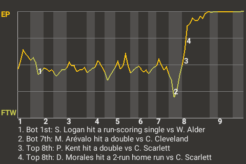 2 (2, 8th Inning off C. Scarlett, 0 on, 0 outs; 8th Inning off J. Hammer, 2 on, 2 outs)