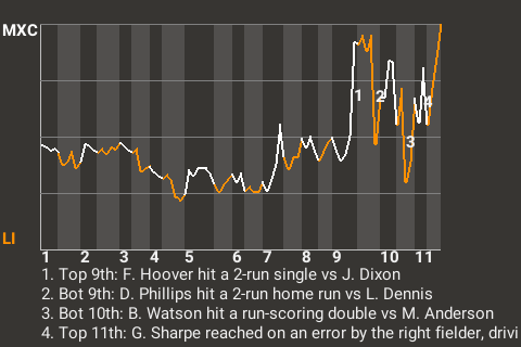 p - J. Moreno pinch hit for R. Tanner in the 11th