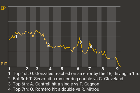 e - E. George pinch hit for Á. Miranda in the 6th