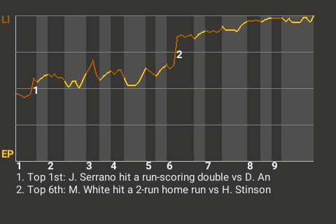e - M. White pinch hit for J. Serrano in the 6th