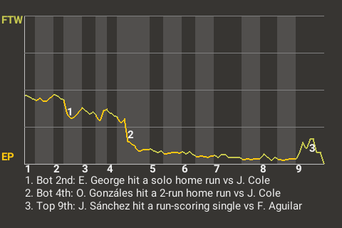 (3, 4th Inning off J. Cole, 1 on, 1 out)