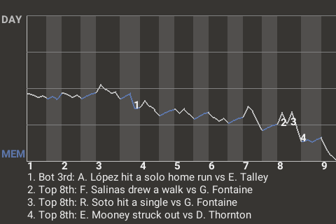 With scoring opportunities rare, the Mockingbirds had to cash in when they had the chance. One such opportunity presented itself in the bottom of the third, when shortstop Alberto López hit a solo home run. The home run came off Eric Talley and made the score 1-0, Mockingbirds. López was 1 for 2 with a home run.