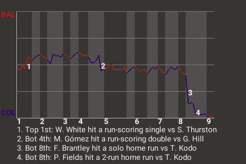 Thurston confounded Baltimore hitters. Over 7 innings, he allowed 1 run on 3 hits.