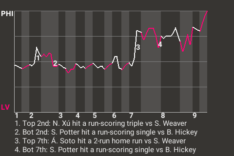 Ángelo Soto delivered a big hit for Philadelphia. The first baseman drilled a 2-run home run in the top of the seventh inning to put the Liberty ahead, 3-1. It was his only hit, but it was a beauty.