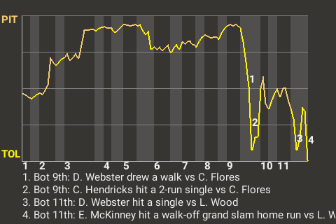 The game was still up for grabs in the bottom of the 11th. With two out, McKinney hit a fastball from Lee Wood for a grand slam home run. The Stingers, in dramatic fashion, had a walk-off win.