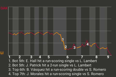 Romero was in the zone all game. He frustrated Oakland hitters while giving the Lighthouse 8 innings of quality work. Romero threw 97 pitches, allowing 4 hits and getting 12 punchouts.