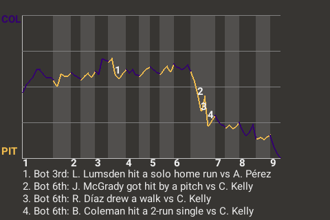 Brian Coleman had a critical at-bat with one out in the bottom of the sixth for Pittsburgh. He came through with a 2-run single to put Pittsburgh in front, 3-2.