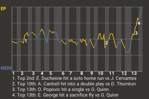 b - H. White pinch hit for C. Gómez in the 10th
