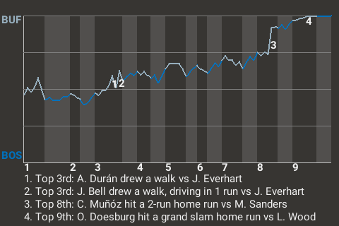 (4, 9th Inning off L. Wood, 3 on, 0 outs)
