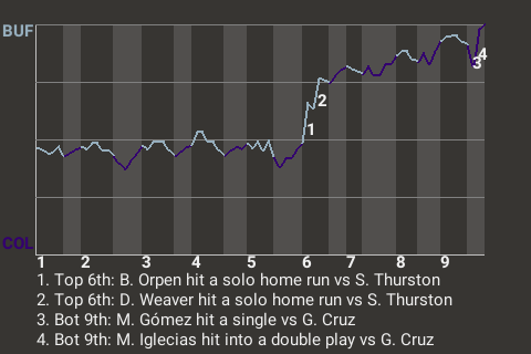 Buffalo used the hitting of Brian Orpen to pick up the win. The left fielder clubbed a solo home run in the top of the sixth inning to put the White Walkers on top, 1-0. For the game, Orpen had 1 home run and 1 single in 3 at-bats.