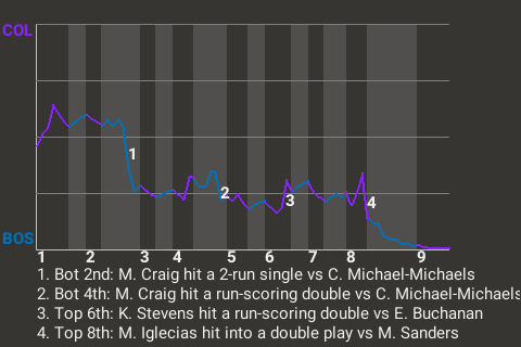 Craig had a consequential at-bat in the bottom of the second for the Patriots. Coming up with runners on 2nd and 3rd and Boston trailing 1-0, he hit a 2-run single.