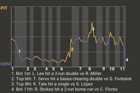 The game was still up for grabs in the bottom of the 11th. With no one out, Stokes hit a splitter from Cipriano Flores for a 2-run home run. The Mockingbirds, in dramatic fashion, had a walk-off win.