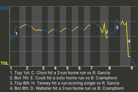 Toledo took a 4-3 lead in the bottom of the eighth inning, when Daniel Webster hit a clutch 2-run home run to bring Stingers fans to their feet.