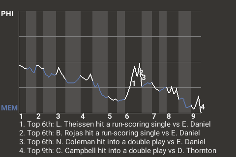 (9, 6th Inning off E. Daniel, 0 on, 0 outs)