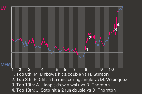 Who knows how it would've ended, had it not been for Jesús Soto? The 27-year old second baseman Soto stroked a 2-run double in the top of the tenth inning to put Las Vegas up, 3-1. For the game, he was 2 for 3, including 1 double and 1 single.