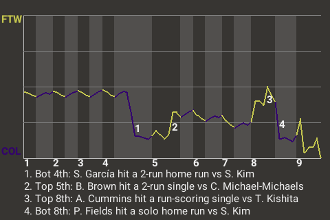 Phil Fields cracked a home run off Seung-gwan Kim in the bottom of the eighth. His solo blast put the Billy Goats on top, 4-3. In all, Fields had 1 single in addition to the home run, while going 2 for 4.