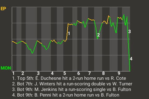 2 (18, 8th Inning off W. Turner, 0 on, 0 outs; 9th Inning off B. Fulton, 1 on, 2 outs)